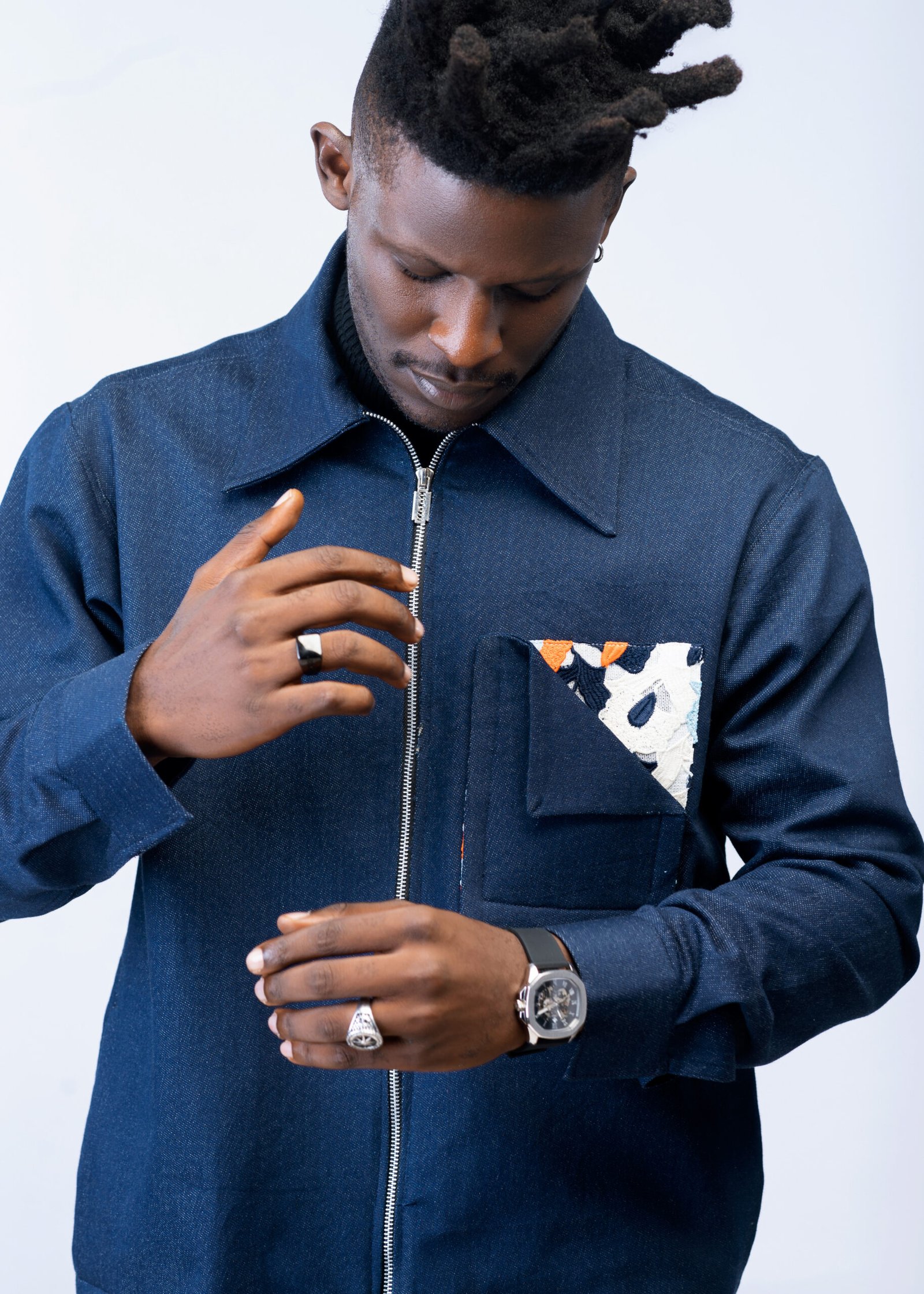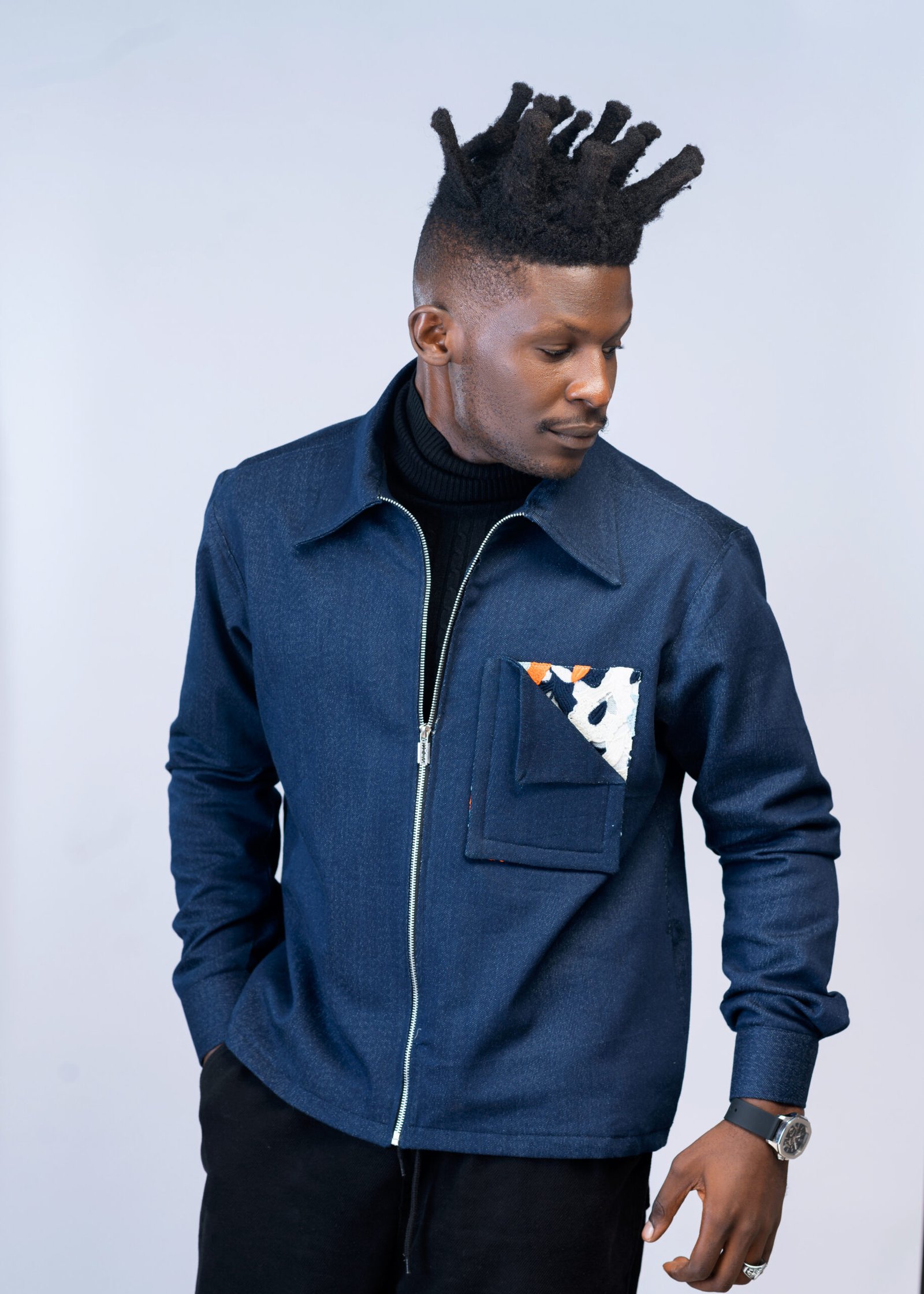 Discover where rugged meets refined with our dark blue denim jacket, meticulously adorned with lace detailing on the 3D pocket. The tough, iconic texture of denim contrasts beautifully with the ethereal allure of lace, creating a piece that’s both contemporary and timeless. This jacket is a celebration of intricate design and craftsmanship, tailored for those who seek to blend classic denim with a touch of delicate artistry. An essential addition for a wardrobe that speaks of individuality and flair.